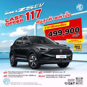- เงื่อนไขทั้งหมดสำหรับลูกค้าที่ทำการจองรถยนต์กับผู้จำหน่ายรถยนต์เอ็มจีอย่างเป็นทางการทุกแห่งทั่วประเทศ ระหว่างวันที่ 18 พฤศจิกายน 2568 – 31 ธันวาคม 2568 และรับรถยนต์ภายในวันที่ 31 ธันวาคม 2568 เท่านั้น ข้อเสนอพิเศษนี้จำนวนจำกัด 90 คันเท่านั้น หรือจนกว่าสินค้าจะหมด