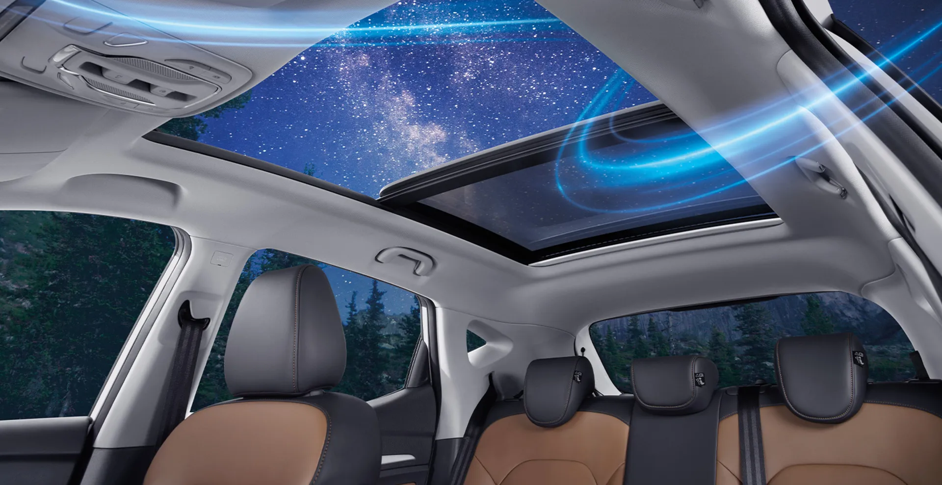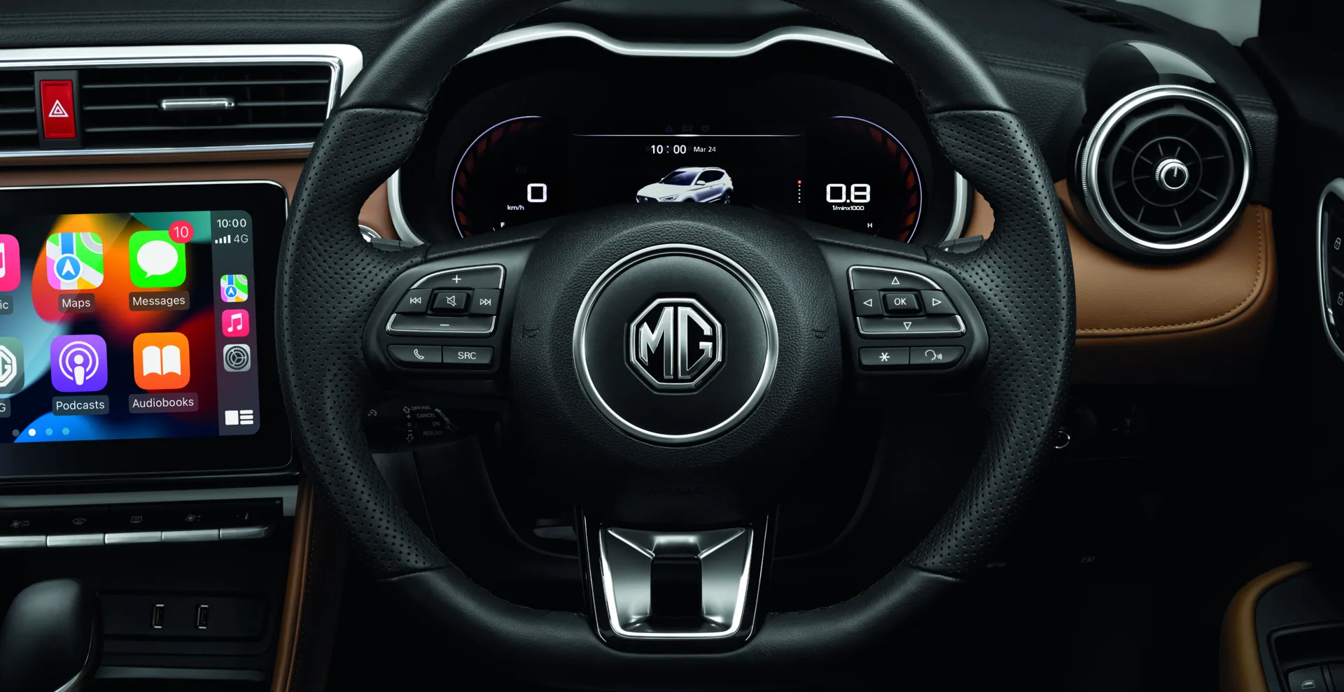 NEW MG ZS ผสมผสานฟังก์ชัน และงานดีไซน์อย่างลงตัว ตั้งแต่ห้องโดยสารสีทูโทนน้ำตาล – ดำ คอนโซลตกแต่งเหนือระดับด้วยวัสดุ SOFT TOUCH ที่มาพร้อมกับหน้าจอ TOUCHSCREEN ขนาด 10 นิ้ว และหน้าจอมาตรวัดความเร็วแสดงผลอัจฉริยะขนาด 7 นิ้ว พร้อมขับขี่สบายตัวในทุก ๆ เส้นทาง ด้วยเบาะนั่งผู้ขับขี่ปรับด้วยไฟฟ้า 6 ทิศทาง และที่พักแขนด้านหน้า สัมผัสมุมมองที่ล้ำกว่าด้วย หลังคาซันรูฟแบบพาโนรามา (PANORAMIC SUNROOF) เต็มที่กับทุกประสบการณ์ใหม่ ๆ ได้ทุกเส้นทาง