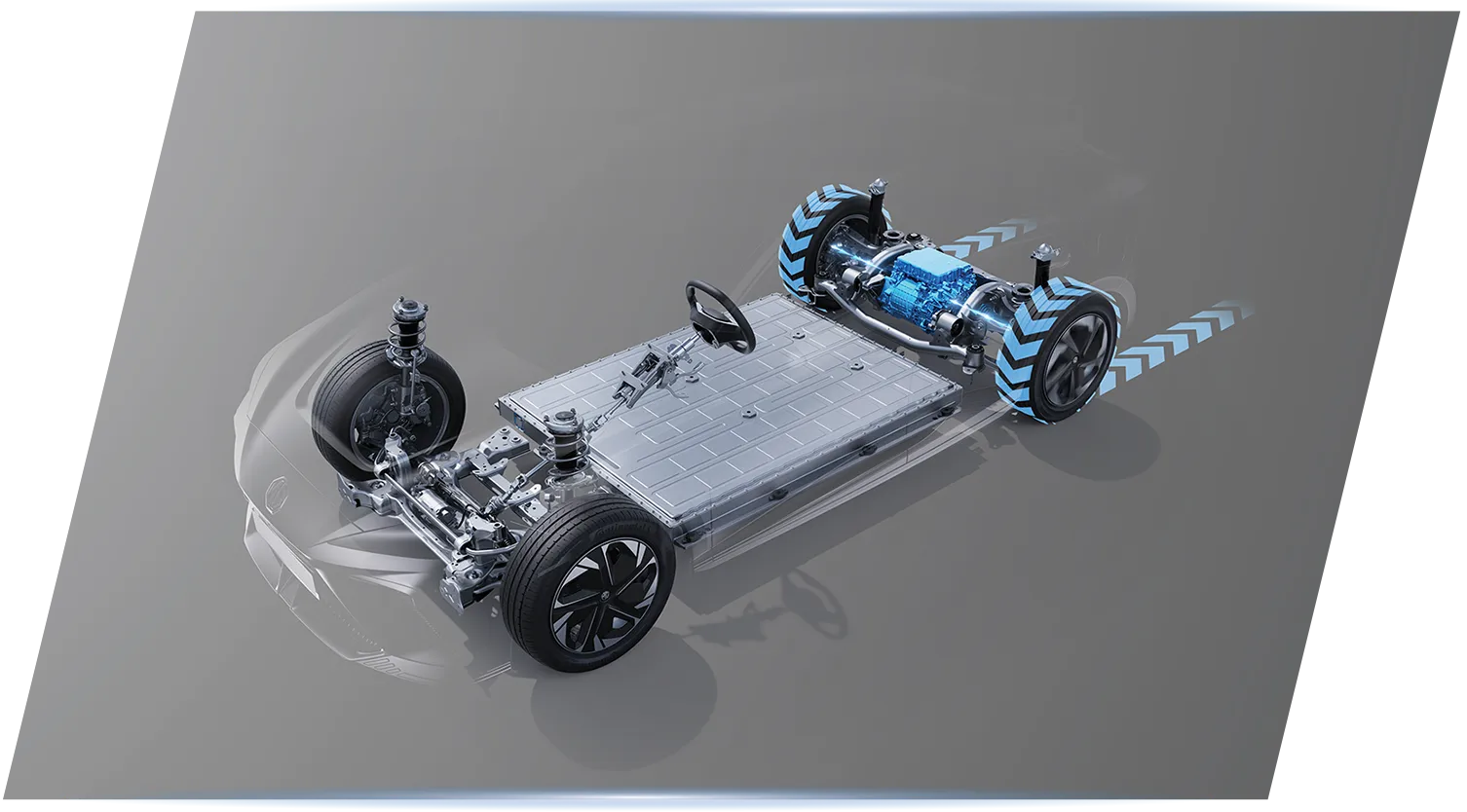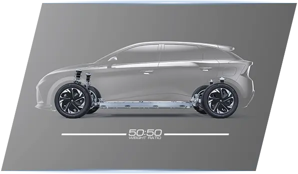 นวัตกรรมการออกแบบโครงสร้างเพื่อรถยนต์ EV พัฒนาให้แบตเตอรี่ติดตั้งเป็นชิ้นเดียวกับตัวถังมอเตอร์ไฟฟ้าขนาดเล็กที่ให้สมรรถนะสูงพร้อมระบบช่วงล่าง 5-LINK SUSPENSION เพิ่มการเกาะถนนเข้าโค้งเฉียบคม คงเสถียรภาพความเร็วให้การขับขี่ได้ดีเยี่ยม