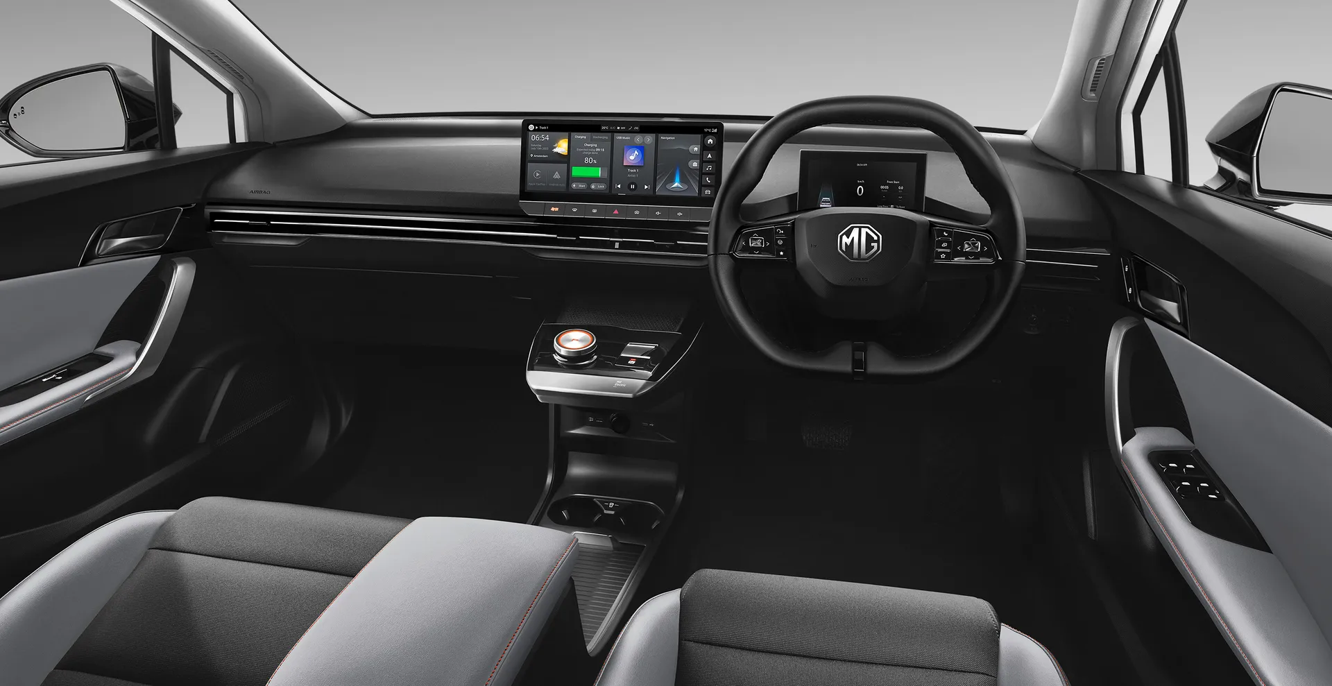 ยกระดับการขับขี่ให้สนุกไปอีกขั้นกับ MG4 LONG RANGE (V) ที่สามารถวิ่งได้ไกลสูงสุด 540 กม. (ตามมาตรฐาน NEDC) และให้คุณได้มากขึ้นด้วยล้ออัลลอยขนาด 18 นิ้ว ที่มาพร้อมเบาะด้านในทูโทน สีเทา – ดำ และระบบชาร์จโทรศัพท์แบบไร้สาย (Wireless charger) และออปชันที่ครบครันมากขึ้น ทั้งระบบ i-SMART, กล้องรอบคัน 360 องศา พร้อมระบบความปลอดภัยที่เพิ่มเข้ามาเพื่อช่วยป้องกันอุบัติเหตุที่อาจเกิดขึ้นจากมุมอับสายตา ช่วยเพิ่มความสะดวกสบายให้คุณในทุกเส้นทาง