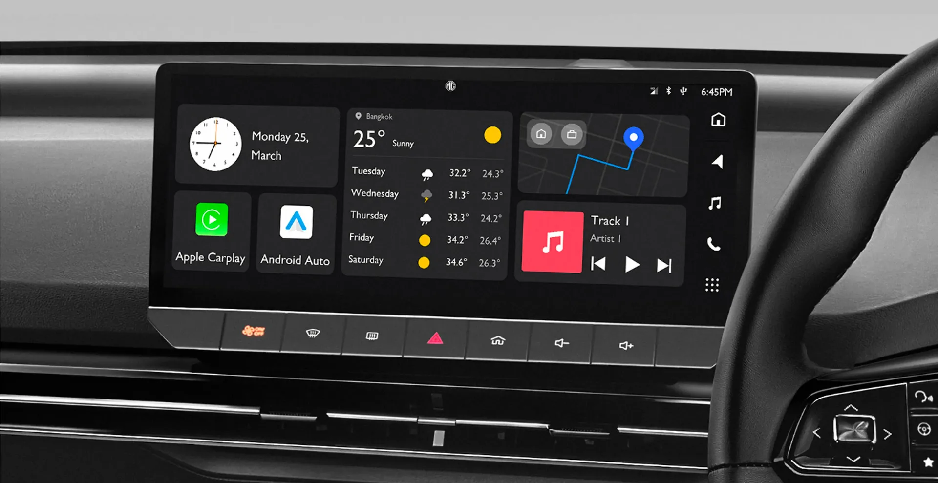 สามารถเชื่อมต่อกับรถได้ง่าย ๆ ทั้งสั่งงานด้วยเสียง ควบคุมผ่านจอ TOUCHSCREEN หรือเชื่อมต่อผ่าน MG THAILAND APPLICATION